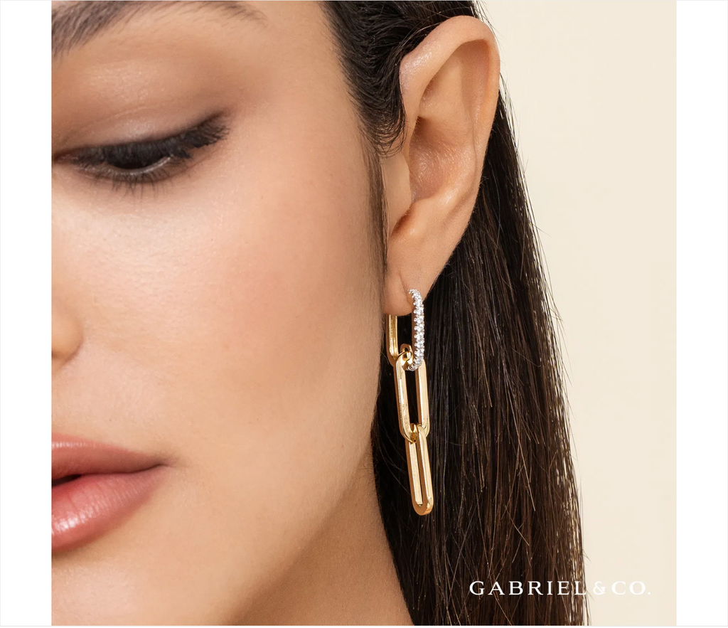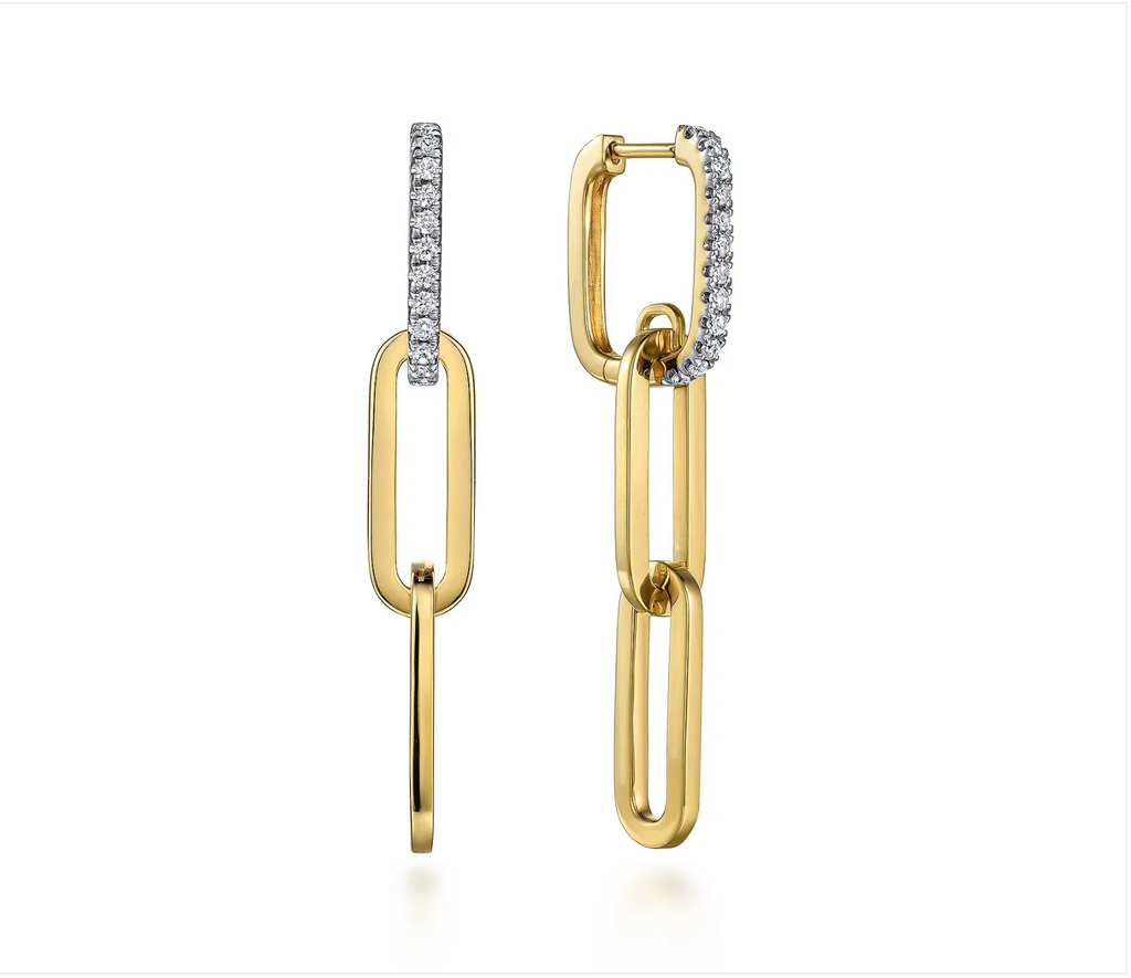 Gabriel & Co. 14K Yellow Gold Diamond Link Hollow Chain Drop Earrings