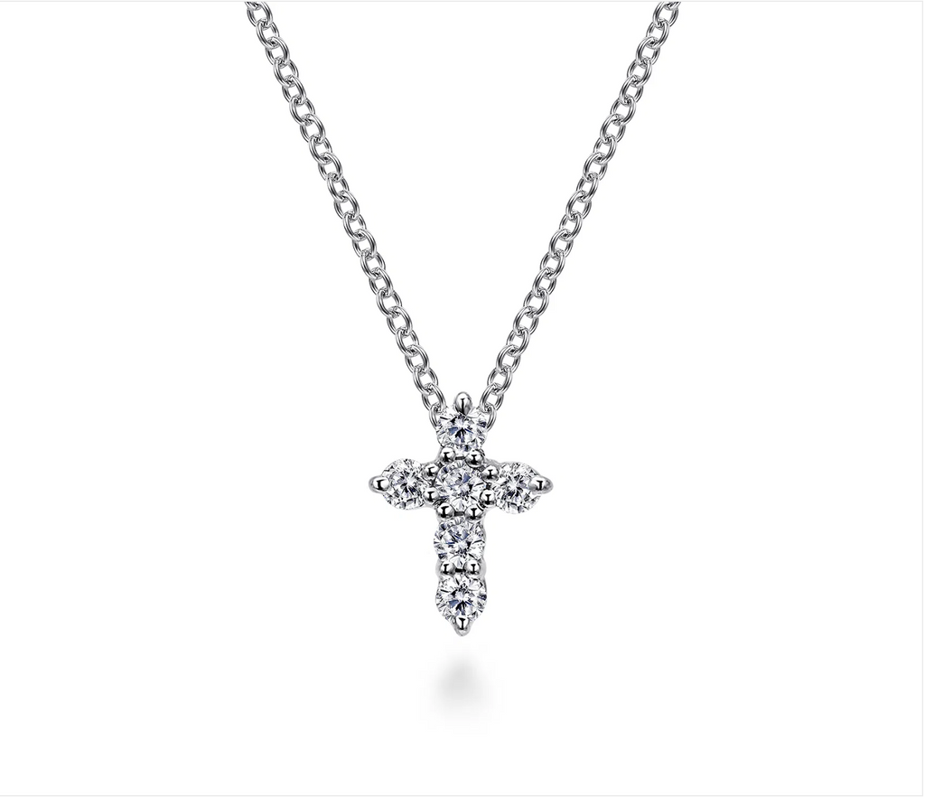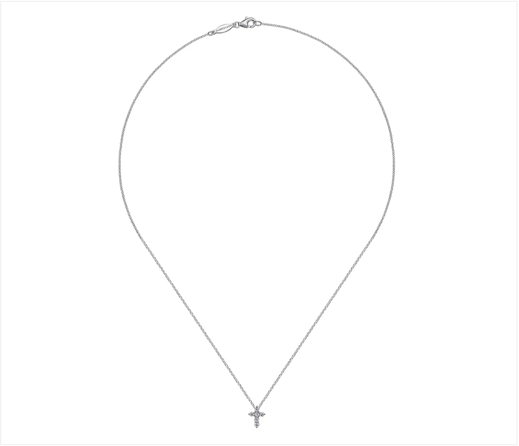 Gabriel & Co. 18 inch 14K White Gold Diamond Cross Pendant Necklace