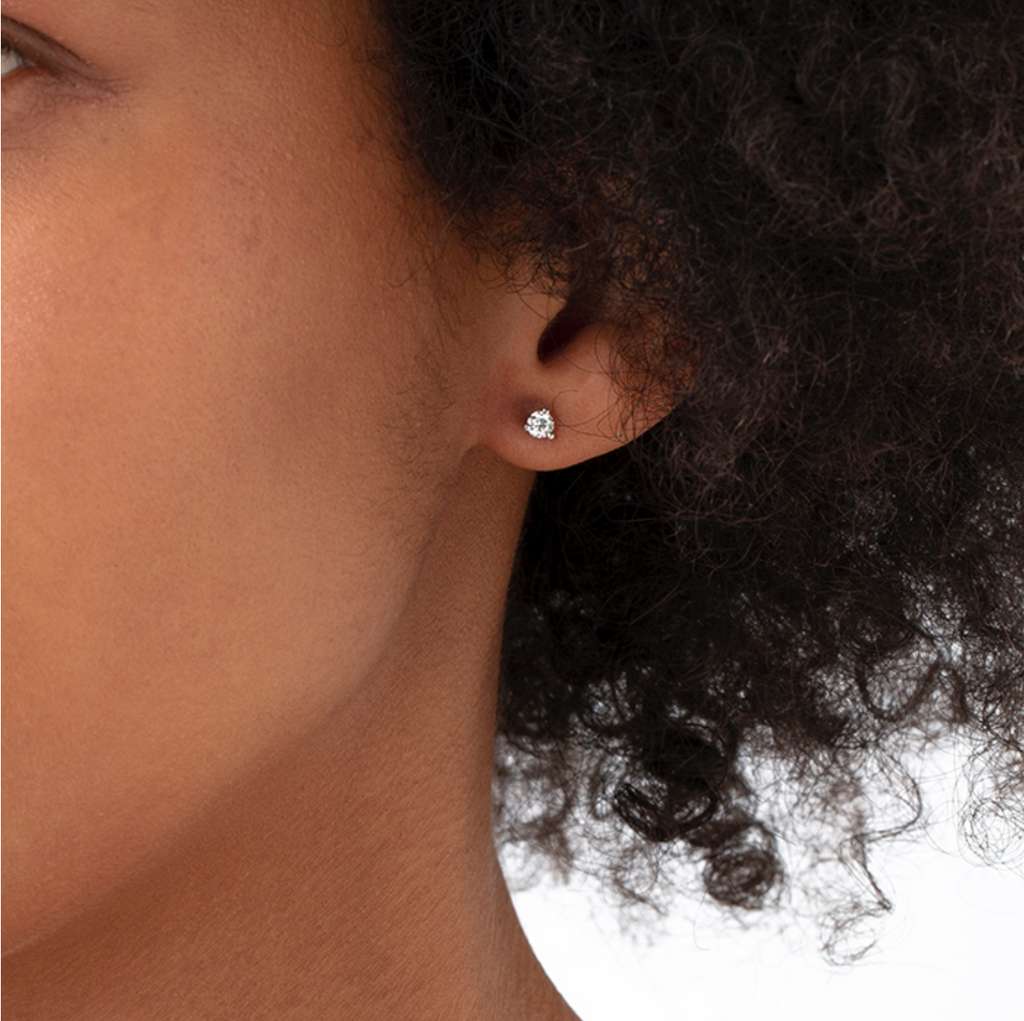 Memoire 0.23-0.28cttw 18K White Gold Three Prong Round Diamond Stud Earrings